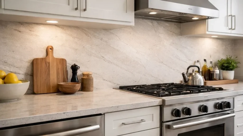 Maintenance is one of the biggest reasons Chicago homeowners choose slab backsplashes. Because slab backsplashes do not have grout lines, they are easier to clean and less likely to stain over time. This is especially important in kitchens that see heavy daily use.